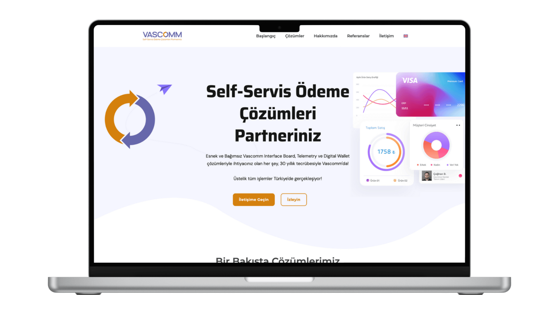 Vascomm, self-servis ödeme çözümlerinde 30 yılı aşkın tecrübesiyle sektöründe öne çıkan bir firmadır. Modern, kullanıcı dostu ve güven veren bir web platformuyla dijital varlığını güçlendirdik.